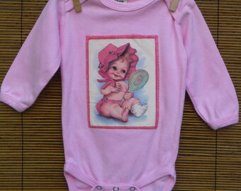 SALE Ready to Ship Boutique Red Baseball Initial Baby Onsie in size 6 months with Appliqued S