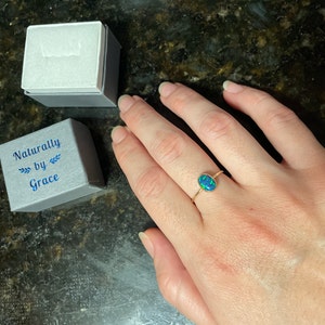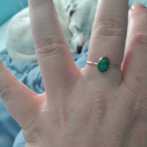 5 out of 5 starsThis ring is simple, yet striking. The stone is so vibrant and incredibly lovely. I've never seen a ring quite like this and I never want to take it off. It's so very beautiful. I've ordered many things over many years at Etsy, but I think Naturally By Grace is my favorite shop now. I will absolutely be purchasing more in different colors. So beautiful and highly recommend this shop!
