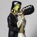 Pink Frankenstein swimsuit is made out of a matte nylon/spandex with an exclusive print. Swimsuit has a scoop neckline, adjustable straps and is trimmed with black nylon spandex. Swimsuit is fully lined and available and available in the classic bikini cut or a cheeky bikini bottom cut.