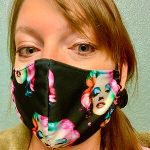 Pink Frankenstein swimsuit is made out of a matte nylon/spandex with an exclusive print. Swimsuit has a scoop neckline, adjustable straps and is trimmed with black nylon spandex. Swimsuit is fully lined and available and available in the classic bikini cut or a cheeky bikini bottom cut.