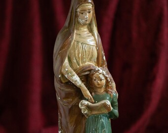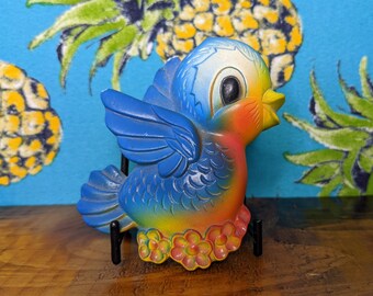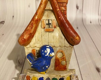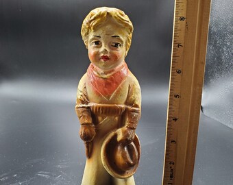 Vintage Chalkware Black And White Owl Bird Figurine Statue