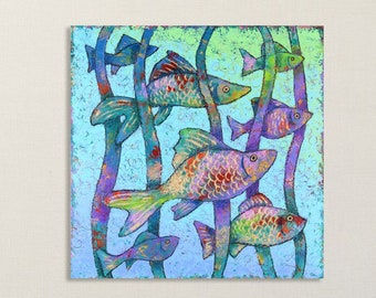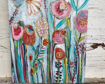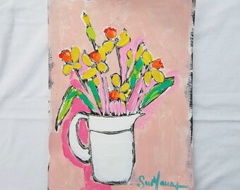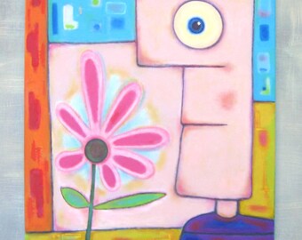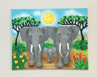 Cute Nursery Art, MAMA LOVE TURTLES, 5x5 Acrylic painting, Whimsical art for small walls