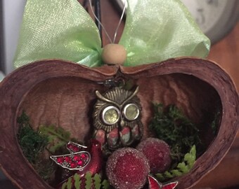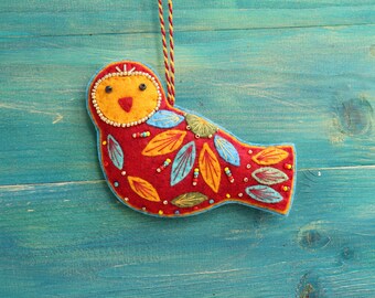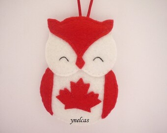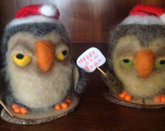 Felt Owl Ornament, Christmas Ornaments, Hand-sewn Christmas Owls ornaments set of 2
