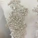 silver rhinestone applique, crystal beaded lace applique pair, handmade silver beaded applique for bridal sash headpiece bodice accessories