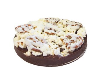 Original Popcorn Pizza With Milk Chocolate Crust, Popcorn Pizza, Chocolate Crust, Gourmet Popcorn, Popcorn, Snack Night, Pizza Party, Pizza