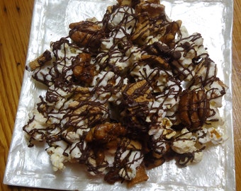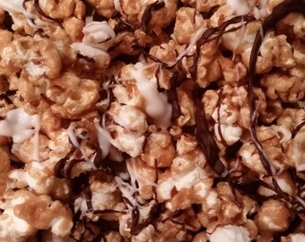 Handmade Caramel Popcorn with Chocolate Drizzle