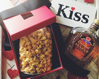 Boozy Popcorn Gift Set, Caramel, Hennessy, Stella Black, Crown Royal