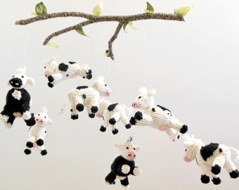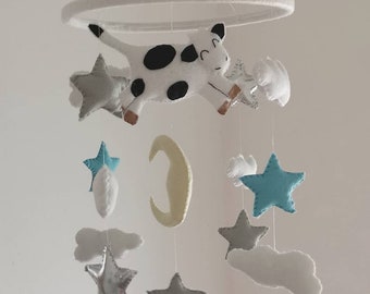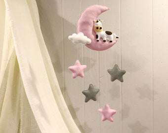 Farm mobile - cow and moon mobile - Nursery rhyme - The cow jumped over the moon - nursery decor - MADE TO ORDER