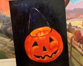 A vintage jack o' lantern Halloween bucket ushers in an enchanting Halloween! I'm delighted to offer prints of my original hand-painted work!