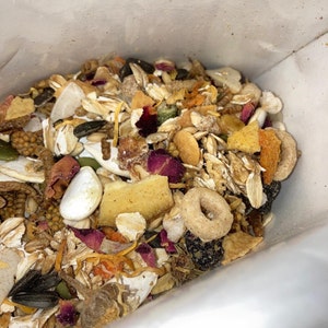 AMAZING👌🏻 My new boys first time trying this mix I alternate it out with my own mix. Absolutely love the variety. But definitely order from her shop! My original package got lost in the mail she was sweet enough to refund me and send a replacement!! ❤️ Also the extra apple wood sticks and peanuts are great. Thank you so much!