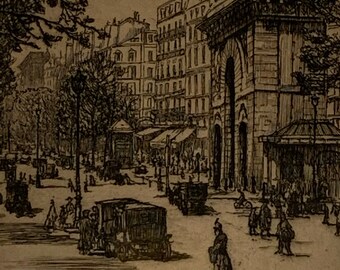 Vintage Paris Print Street Scene - Boulevard St. Denis - Jan Korthals Watercolor