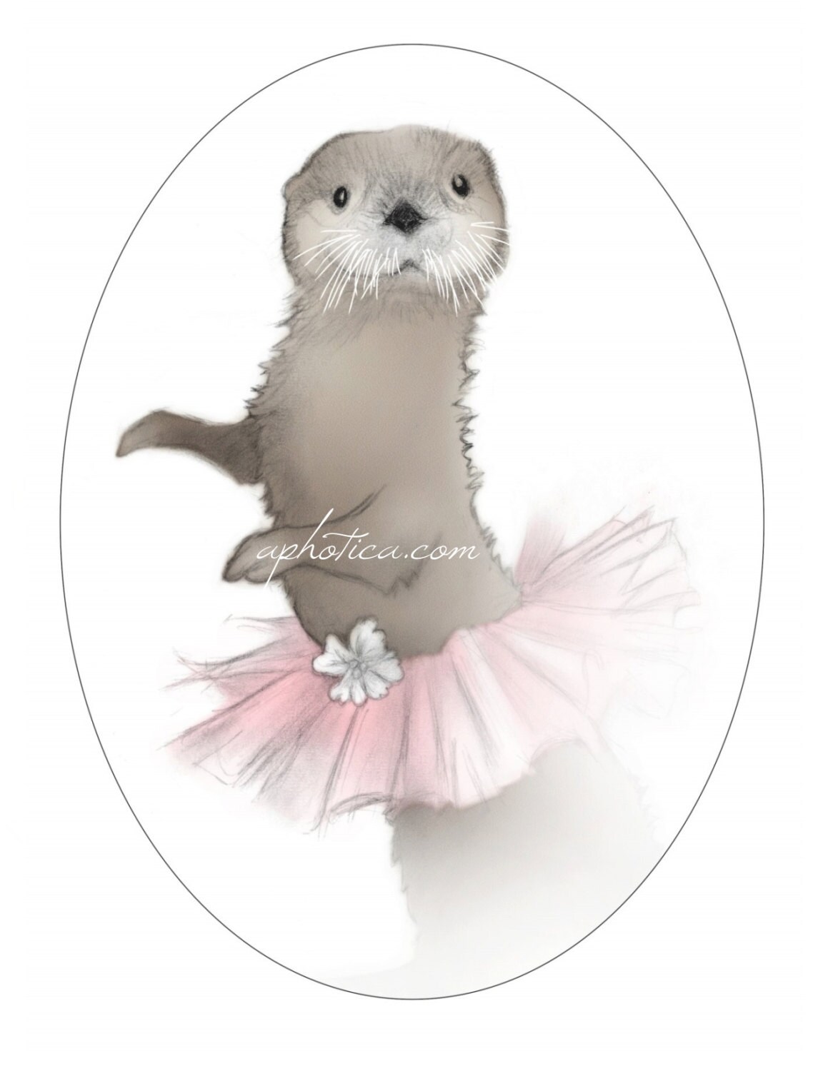 Original 8x10 inch art print of an otter wearing a pink tutu. Printed on high-quality glossy photo paper.