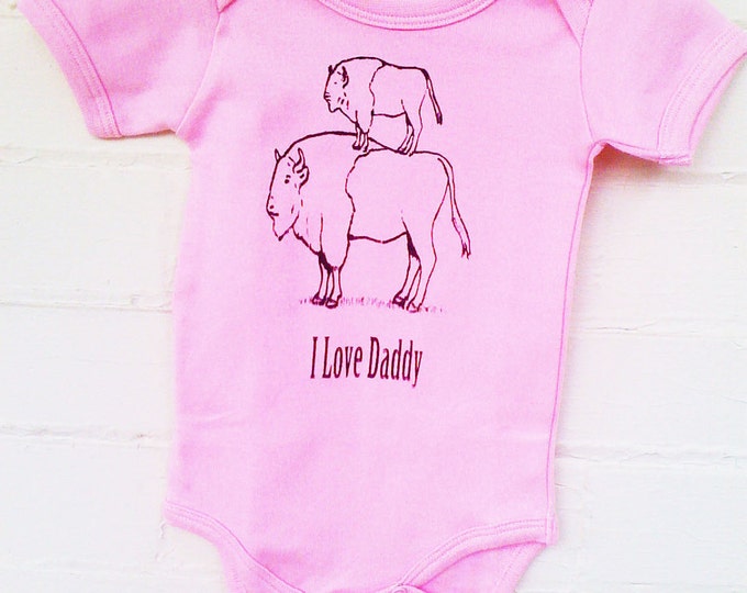 Screen Printed Bison - I love Daddy Baby ORGANIC Cotton Pink Onesie Bodysuit