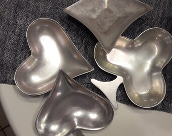 Vintage Ashtray Set - Playing Card Suits - Bohemian Czech Glass In Box Bohemia Retro