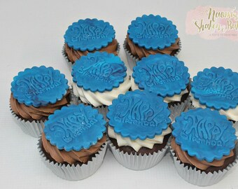 24x Edible Happy Birthday Fondant Cupcake Toppers