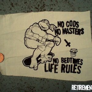 No Gods No Masters No Bedtimes LIFE RULES turtles skateboard patch