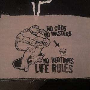 No Gods No Masters No Bedtimes LIFE RULES ninja turtles skateboard patchMandy Paris Jul 19, 2018