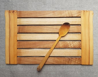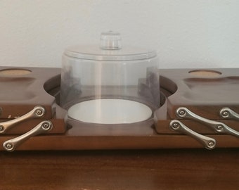 Vintage Hellerware Wooden Trivet Set In Box Walnut Cork Hot Trays Retro