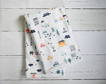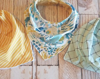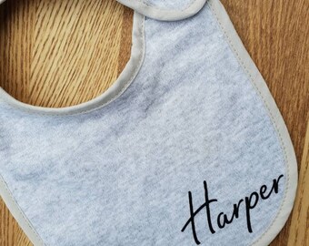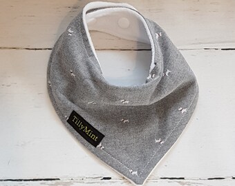 Boys Baby Bib Grey and Blue Critters Reversible