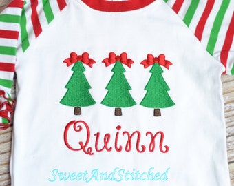 Girl's Shabby Christmas Wreath Initial Appliqued Tee, Girls Christmas Tshirt, Girls Christmas Wreath Tshirt, Raggy Wreath Tshirt