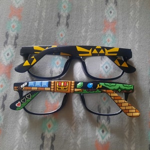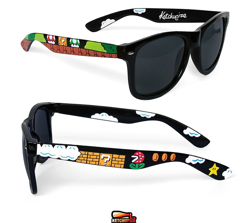Mario sunglasses geek gift for her nerd birthday gift for him custom painted unique geek girl gamer retro video game Piranha Plant 1UP 8bit