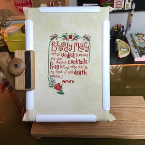 This is the pattern (i.e. the chart and instructions, 12 pages of them delivered in a PDF) for you to use to make your own Kiss the Cook sampler, just like the one we posted on our website, which subsequently went viral. This is NOT a finished piece.