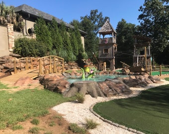 This listing is for the fairy door only. Flowers, patio, and chair are not included.