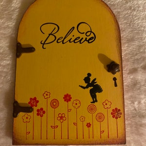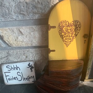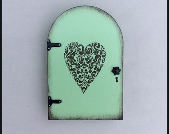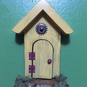 Ready to Ship..... This little fairy door measures only 4 inches x 6 inches. The entire piece is made by hand. Including the hinges and door knob. All of my fairy doors were made with a garden in mind but of course you could put them anywhere..