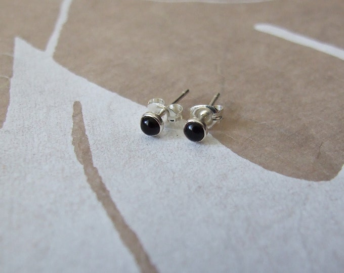 Black Onyx Stud Earrings - 3 mm Onyx set in Silver, tiny studs