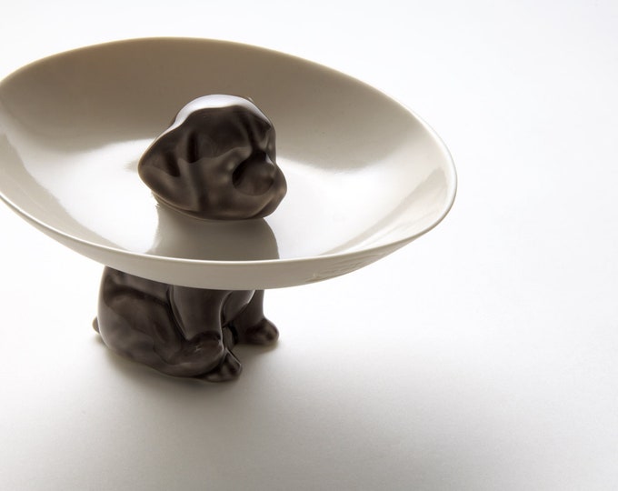 The dog bowl, porcelain bowl held up by a cute dog