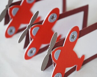 These tags can be used as food labels or place holders. The colors can be changed to fit your party needs. They measure a little over 3 inches wide and are about 2 inches tall. They are half fold cards and stand easily on their own.