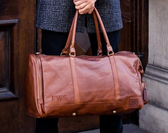 Personalized Leather Holdall/Duffle - Weekend Bag - Overnight Leather Bag in Vintage Brown Handmade by MAHI Leather