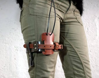 Leather Thigh Belt for Men and Women - Brown - steampunk - burning man - festivals - apocalypse, Please read Description for size