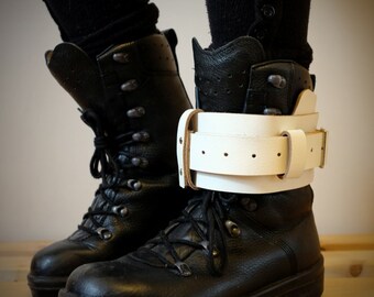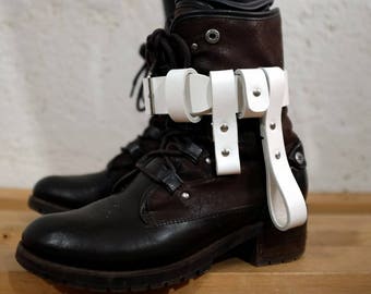 Leather Boot Garter for Men and Women - White - steampunk - burning man - apocalypse - mad max, Please read Description for size