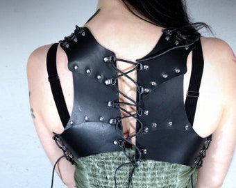 Small Black Handmade Real Leather Corset Vest - steampunk - burning man - festivals - bellydance, Please read Description for size