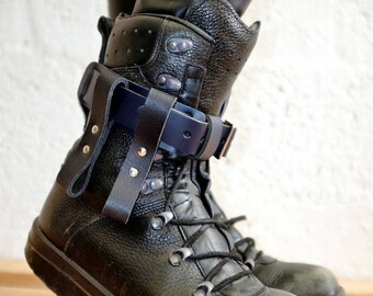 Leather Boot Garter for Men and Women - Navy - steampunk - burning man - festivals - apocalypse - mad max, Please read Description for size