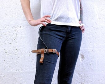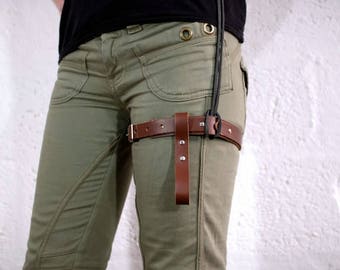 Leather Thigh Garter Belt for Men and Women - Brown - steampunk - burning man - festivals apocalypse - mad max, See description for size