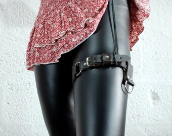 Premium Leather Single Thigh Harness for Men and Women - Black - steampunk - burning man - festivals - apocalypse, see description for size