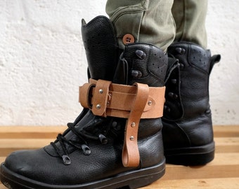 Leather Boot Garter for Men and Women - Natural/Tan - steampunk - burning man - festivals - apocalypse - mad max, See description for size