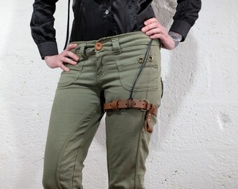 Leather Thigh Garter Belt for Men and Women - Green and Brown - steampunk, burning man, festivals, apocalypse, mad max