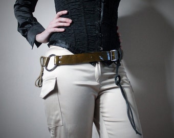 Leather Belt for Men and Women - Green Moss Patent - bushcraft - steampunk - burning man - festivals - apocalypse, See description for size