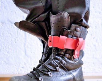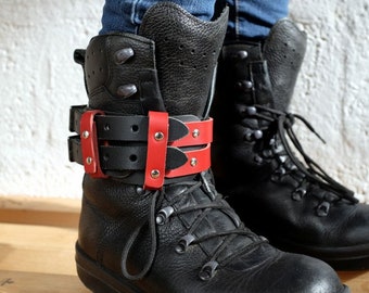 Leather Boot Garter for Men and Women - Red and Black - steampunk - burning man - festivals - apocalypse - mad max, See description for size