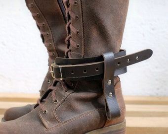 Leather Boot Garter for Men and Women - Dark Brown - steampunk - burning man - apocalypse - mad max, Please read Description for size