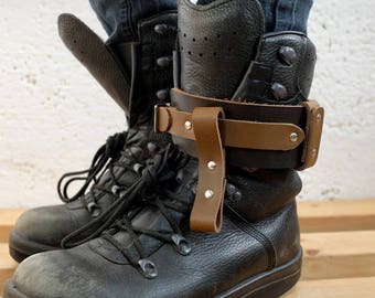 Leather Boot Garter for Men and Women - Mixed Brown - steampunk - burning man - apocalypse - mad max, Please read Description for size