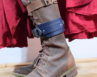 Leather Boot Garter for Men and Women - Blue and Black - steampunk - burning man - apocalypse - mad max, Please read Description for size