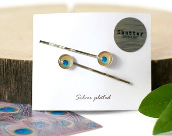 Peacock Hair Clip- Purple, Turquoise, and Lime Green Tropical Felt Hair Clip