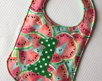 WATERPROOF WIPEABLE Baby to Toddler Wipeable Plastic Coated Bib Summer Picnic Watermelon