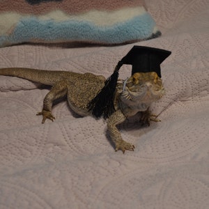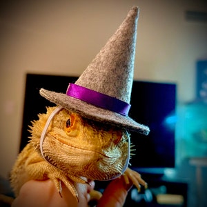5 out of 5 starsSO cute!!! the strap is the perfect size for my dragon, not too tight. It came in a cute little tiny box. The ribbon sticks off the hat a little because the hat tapers in as it goes up, but it's not a huge deal (only noticeable if you look at it in detail) and I would definitely buy it again. Now Gandalf can be the wizard lizard he truly is!