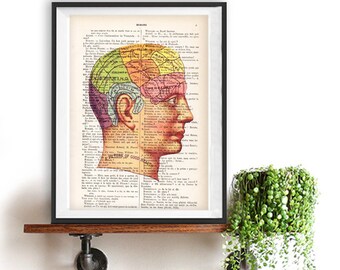 Antique Phrenology Head Illustration Chart - 1897 Illustrated Medical Book Plate