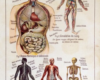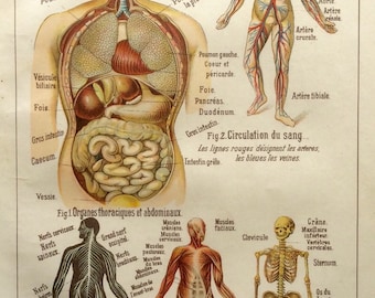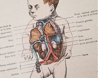 Antique Internal Organs Anatomy Illustration Chart - 1897 Illustrated Medical Book Plate